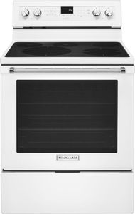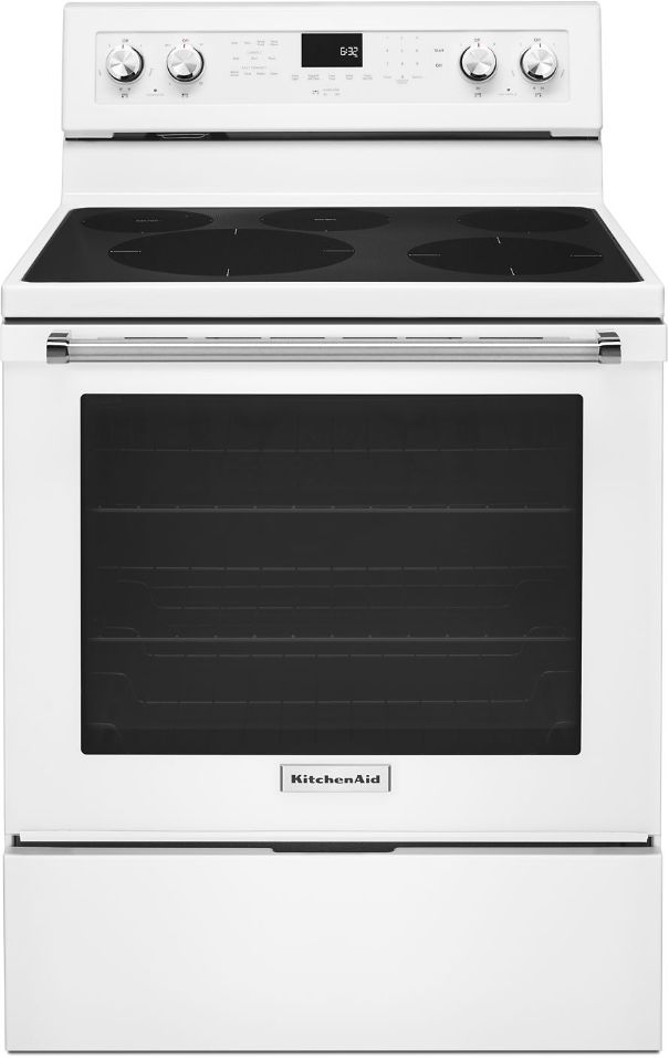 This beautiful electric freestanding range produces flawless cooking results with Even-Heat™ True Convection. The unique bow-tie design and convection fan ensure the inside of the entire oven is heated to, and stays at, the perfect temperature. The oven is 6.4 cu ft., providing an extra-large capacity that lets you easily prepare multiple dishes at once. The cooktop features five heating surfaces, including a dedicated warming zone, allowing you to do more on your range.Read More